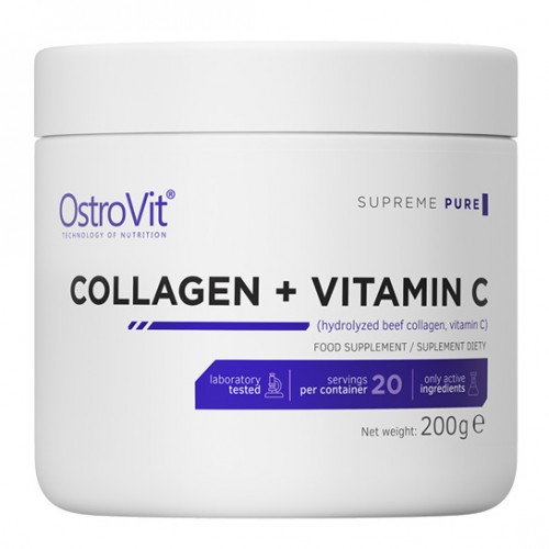 OstroVit Collagen + Vitamin C - порошкоподібна дієтична добавка, високої якості з лінійки OstroVit True Taste. Призначена для фізично активних людей та тих, у кого підвищена потреба в колагені та вітаміні С. Додавання L-аскорбінової кислоти допомагає ще більш сприятливому синтезу колагену забезпечити належну роботу хрящів, шкіри, ясен та кровоносних судин у нашому тілі. OstroVit Collagen + Vitamin C складається з двох активних компонентів, які доповнюють один одного, і підтримуватимуть роботу нашого кістково-суглобового апарату, забезпечуватимуть підтримку м’язів та належну роботу суглобового хряща.