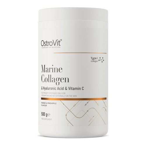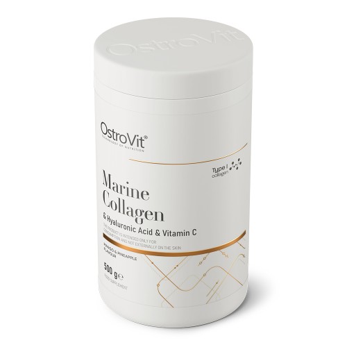 Морський колаген OstroVit з гіалуроновою кислотою та вітаміном С - це дієтична добавка в порошку, що містить колаген морської риби, гіалуронову кислоту та вітамін С. Продукт розроблений для всіх людей, які піклуються про красиву та здорову шкіру, а також для людей, які займаються спортом. Незамінна добавка: після травм, інтенсивних фізичних навантажень, під час відновлення після переломів та для відновлення пошкоджених суглобів. Правильний синтез колагену вимагає присутності вітаміну С. Вітамін С, що міститься в продукті, допомагає у правильному виробництві колагену, щоб забезпечити нормальну роботу хряща, ясен, шкіри та зубів.